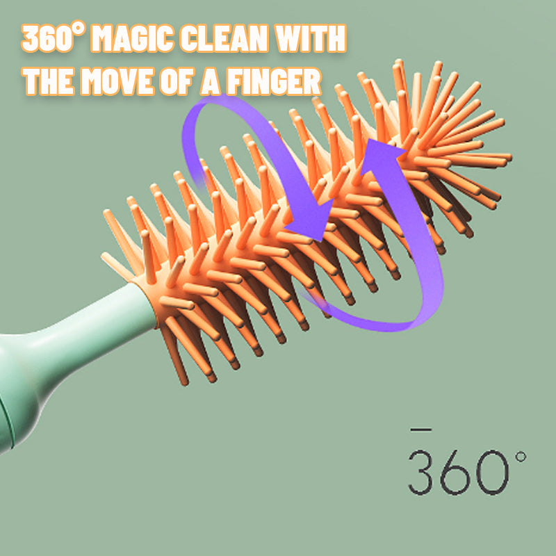 A DEEP, 360° CLEAN The powerful, 360-degree rotating head ensures the soft silicone bristles reach and scrub every single surface inside the bottle, including the difficult-to-clean bottom and shoulders, removing stains you can't reach by hand.