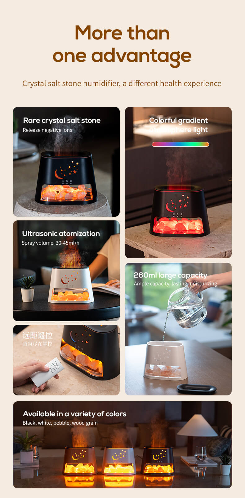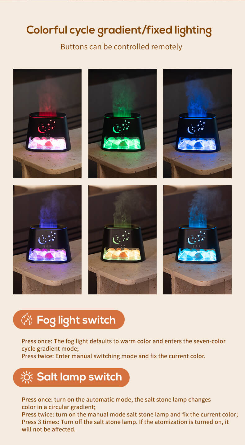 • Product: Salt Flame Aroma Diffuser – Ultrasonic LED Humidifier