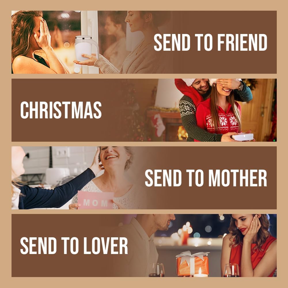 This innovative design uses a magnetic mixer (implied by name) to perfectly blend your drink with zero effort. The mug is rechargeable and features an appealing white and gray design.