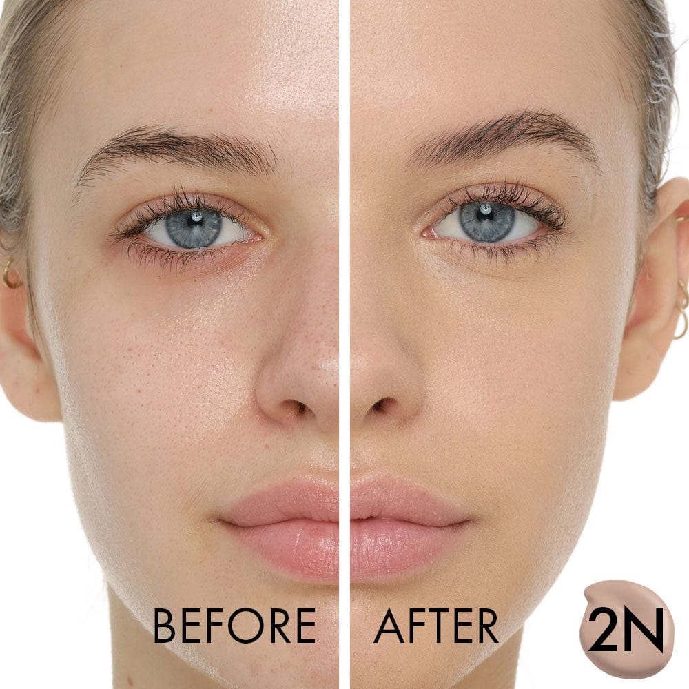 A BUILDABLE, 'NO-POWDER-NEEDED' FINISH The sheer-to-medium coverage is completely buildable. Let the first layer dry before adding another to successfully create the perfect natural-looking veil without ever needing to set it with powder.