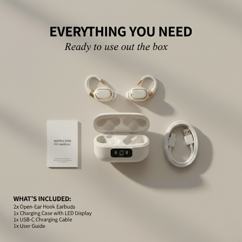 Arcwave™ – Open-Ear Hook Wireless Earbuds | 145Hr Battery, Waterproof, – Ausbury