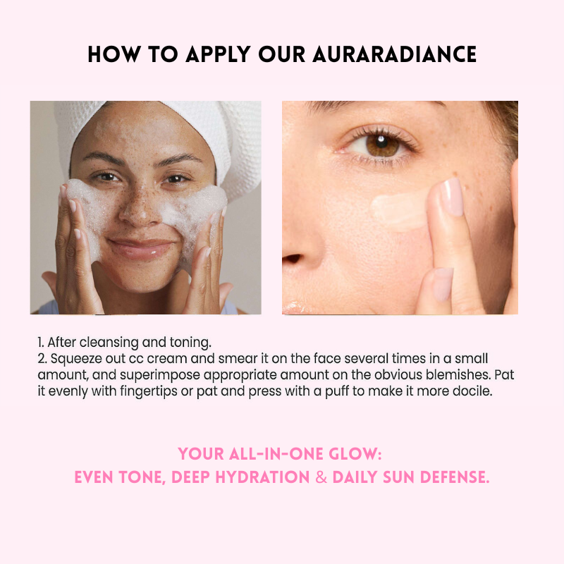 Experience universal compatibility and customized care with AuraRadiance Complex's Adaptive Skin-Balancing Formula. This isn't a one-size-fits-all compromise; "Whether you have dry, oily, or combination skin, this CC+ cream adapts to your needs". Its intelligent formulation provides "hydration where needed and controlling oil for a balanced finish". This means your skin receives precisely what it needs, ensuring a comfortable, balanced, and flawless complexion that looks and feels natural, without "imperfections hold you back!".