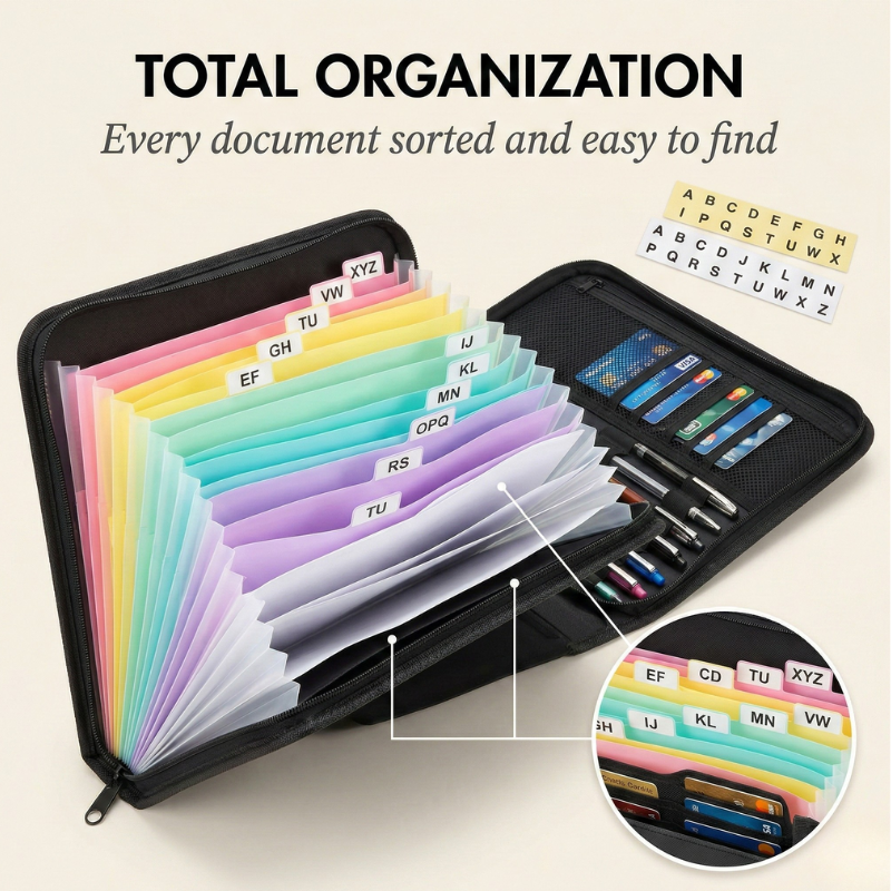 ✔ FIND ANY DOCUMENT IN SECONDS — NO MORE DIGGING THROUGH PILES - Multiple color-coded expandable accordion pockets with pre-cut label tabs let you sort everything by category — medical, financial, legal, personal — so the paper you need is always exactly where you expect it.