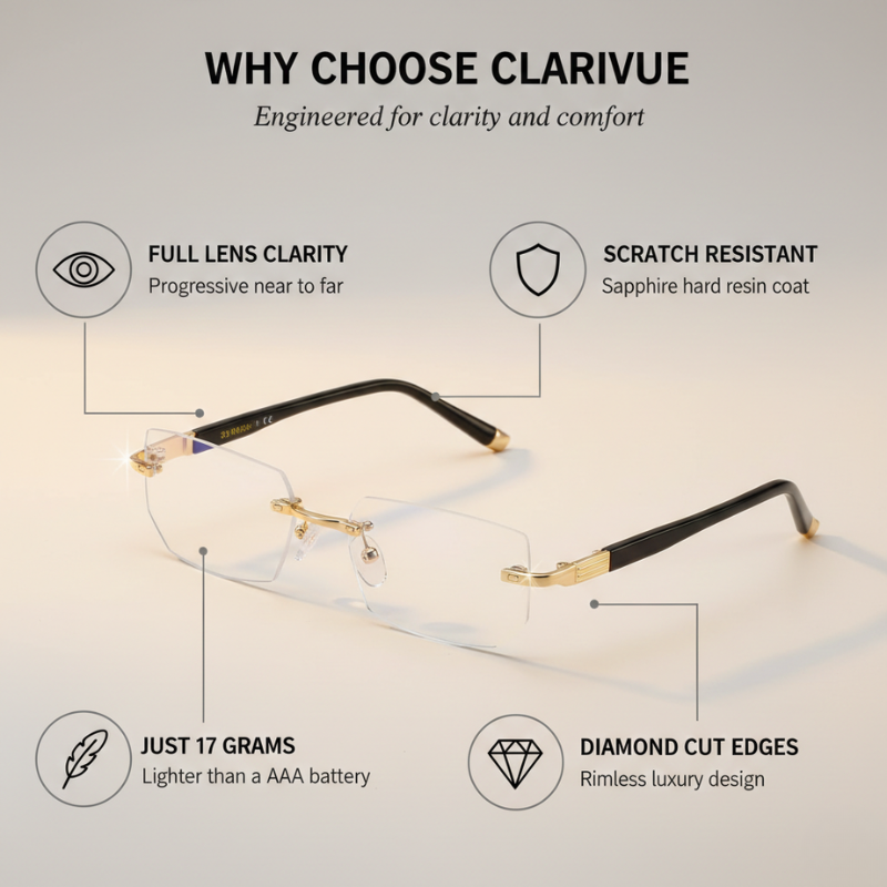 Clarivue™ – Diamond-Cut Rimless Progressive Reading Glasses + 50% OFF