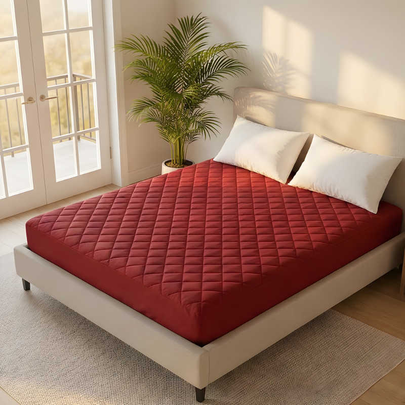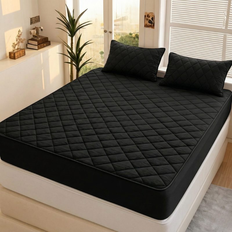 The diamond-quilted surface adds a soft, padded layer of comfort you can actually feel, while the waterproof backing underneath silently blocks every drop of liquid, sweat, and moisture from ever reaching your mattress — no crinkling, no heat, no plastic feeling.