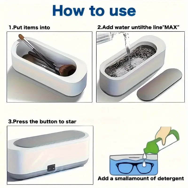 Why buy multiple cleaning tools when one can do it all? DazzleClean Pro's versatile design gently yet effectively cleans a wide range of items, including delicate jewelry, watches, glasses, and even those hard-to-clean items like dentures and children's toys. Keep your entire home sparkling with one compact device.