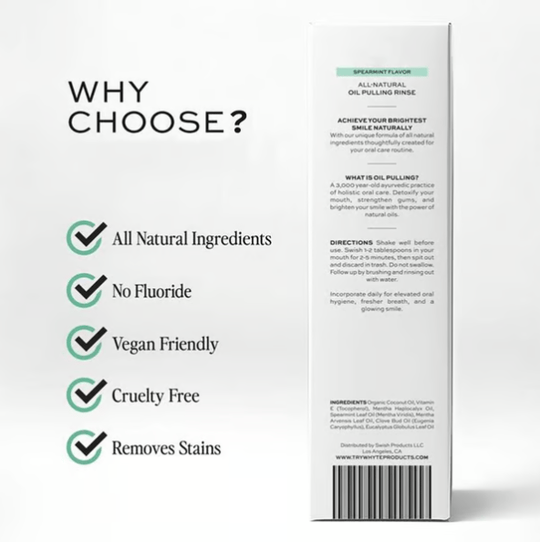 ✔ A NATURALLY WHITER SMILE The oil gently works to lift and pull away the surface stains left behind by coffee, tea, and wine. It whitens your teeth naturally and safely, without the use of harsh, sensitivity-causing chemicals.