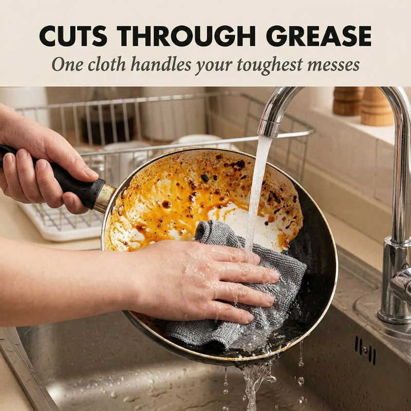 You've tried "better" paper towels. Thicker ones. Double-ply ones. They still shred on greasy pans, still leave fuzz on your glass, and still cost you hundreds of dollars a year.