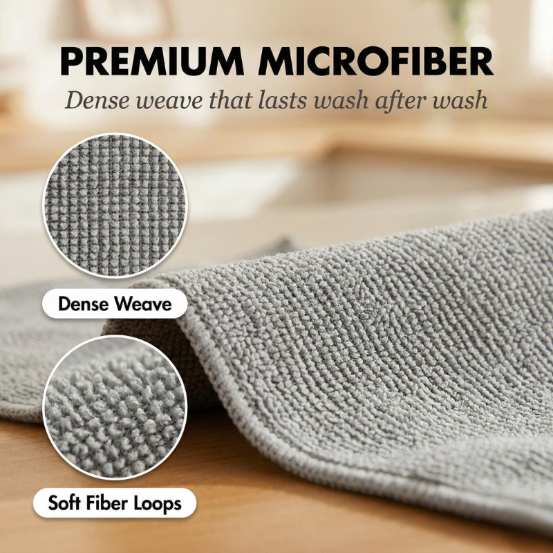 ✔ FINALLY — A STREAK-FREE, LINT-FREE CLEAN ON EVERY SURFACE - Premium non-fluorescent microfiber grabs and traps dust, grease, and grime at the fiber level instead of smearing it around. Your glass, mirrors, countertops, and stainless steel come out spotless in one wipe — no chemical sprays needed.