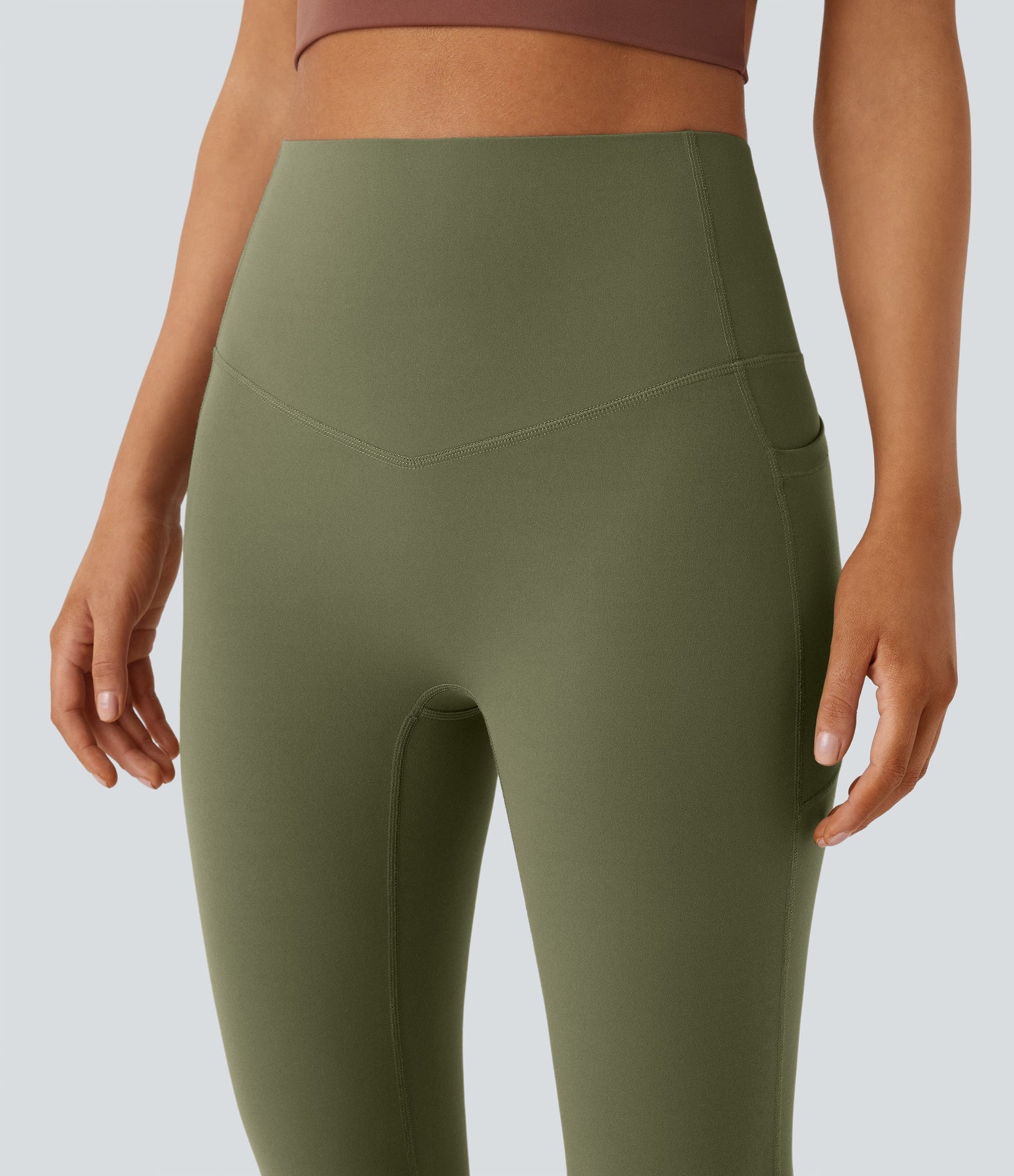 By fusing a double-bonded Tummy-Control waistband with a reinforced Bootcut-Flare architecture, this mechanism creates an optical illusion of longer, leaner legs while keeping your essentials locked in deep, invisible pockets.