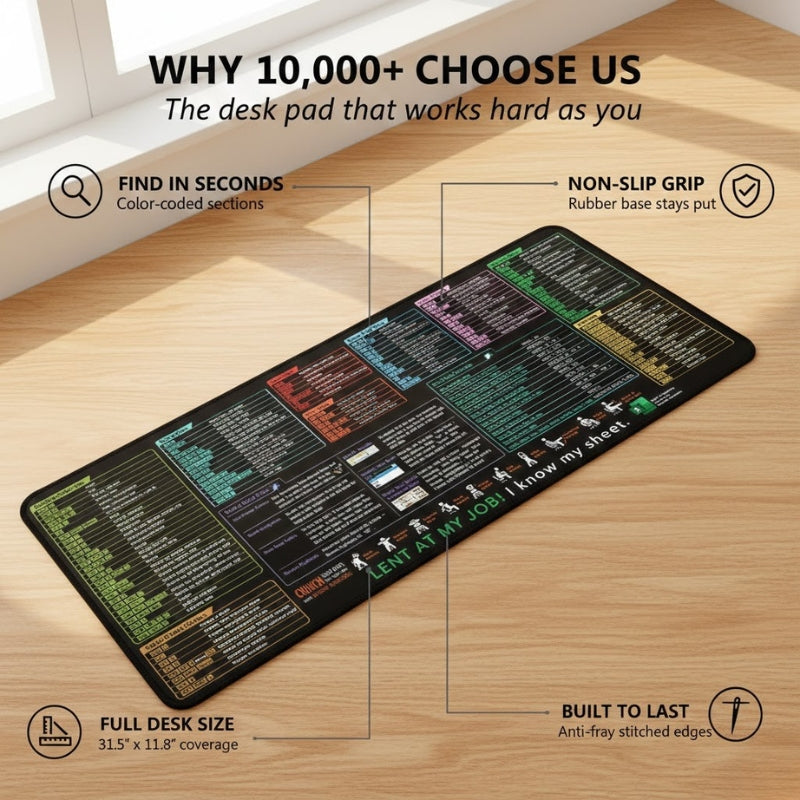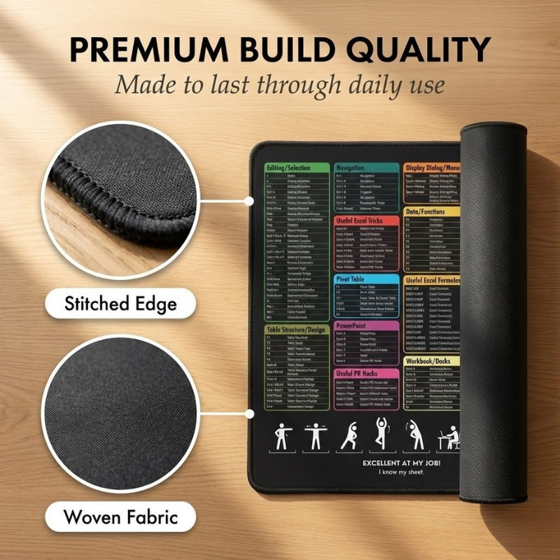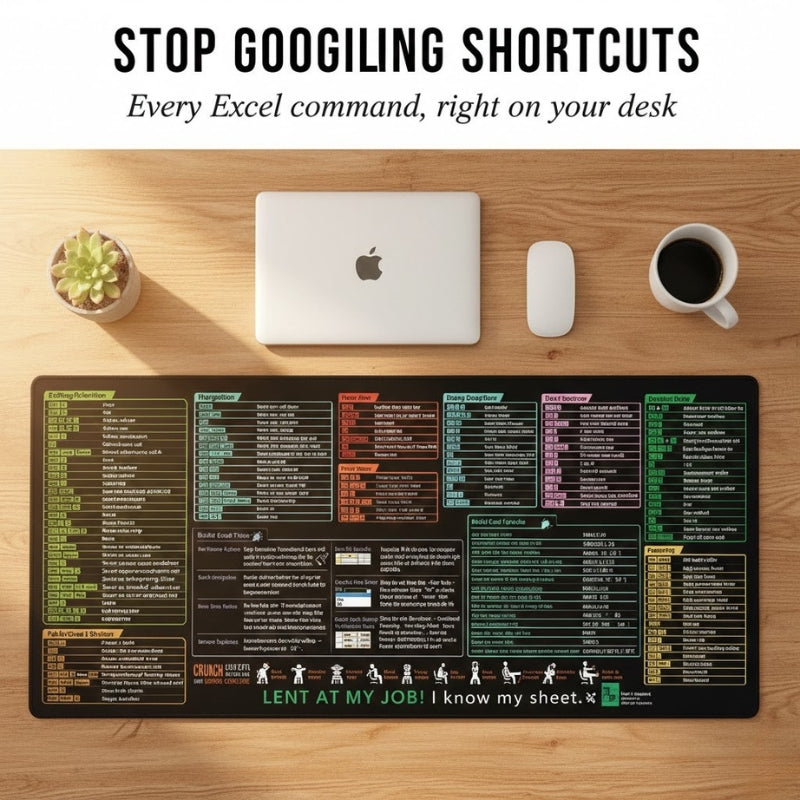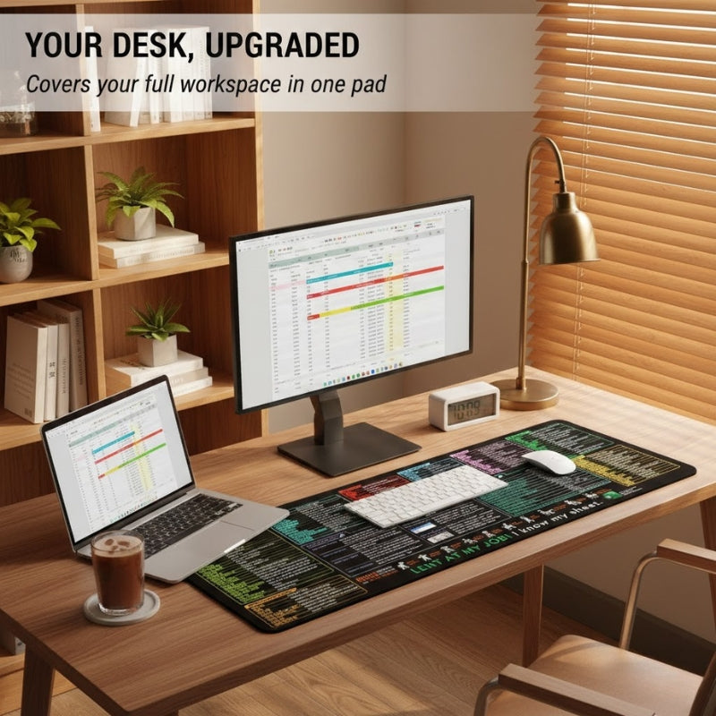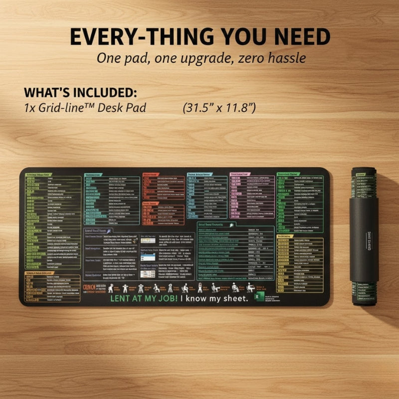 The Gridline™ Desk Pad puts every Excel shortcut, Word command, and essential formula exactly where you already look right beneath your hands. With color-coded sections organized by function, you glance down, find the command in seconds, and keep working. No tab-switching, no searching, no broken focus. Just a faster, sharper version of your workday starting the moment you unroll it.