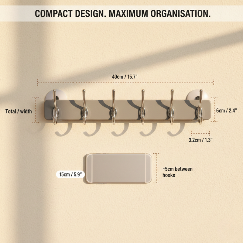 The harder you load it, the tighter the seal holds. Hang your towels, your coats, your keys, your jewellery — and walk away knowing it's all still there tomorrow morning.