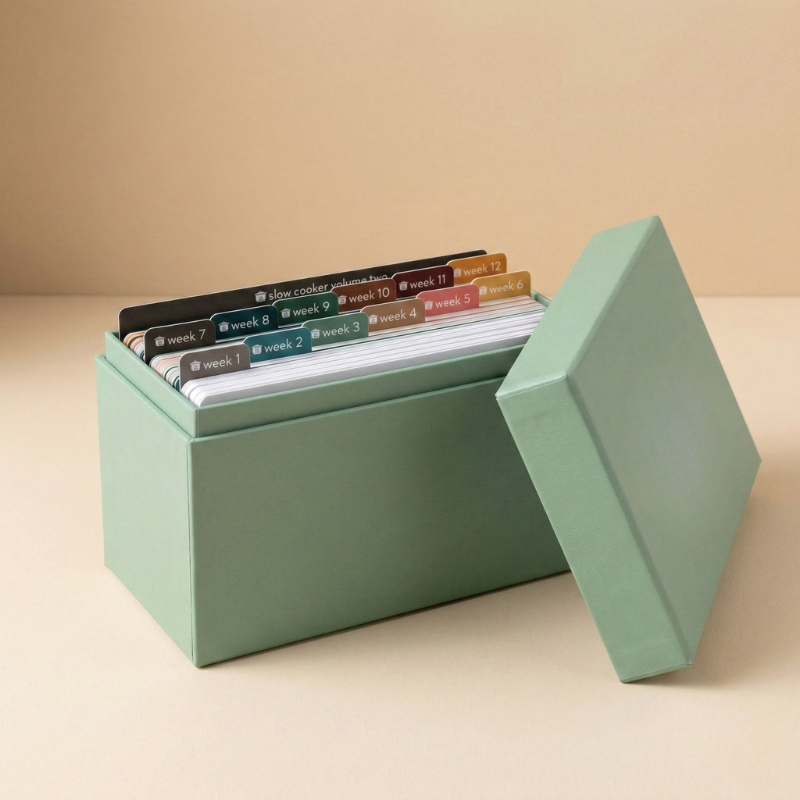 THE "I DON'T KNOW WHAT TO MAKE" SPIRAL ENDS TODAY Hearthwell's™ 12-week week-by-week tabbed system eliminates the decision entirely — each weekly tab contains exactly 7 pre-chosen slow cooker recipes, so you open the box, pull Week 3, and dinner is already decided before you've taken off your coat.