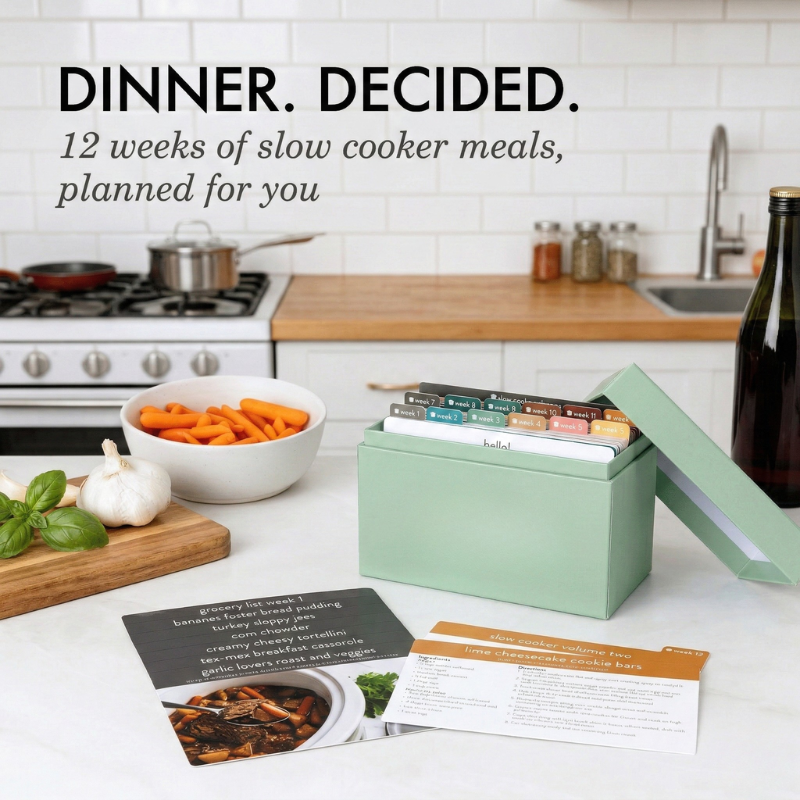 Hearthwell™ – 12-Week Slow Cooker Meal Planning Kit with 103 Photo Recipe Cards & Reusable Grocery Lists + 50% OFF