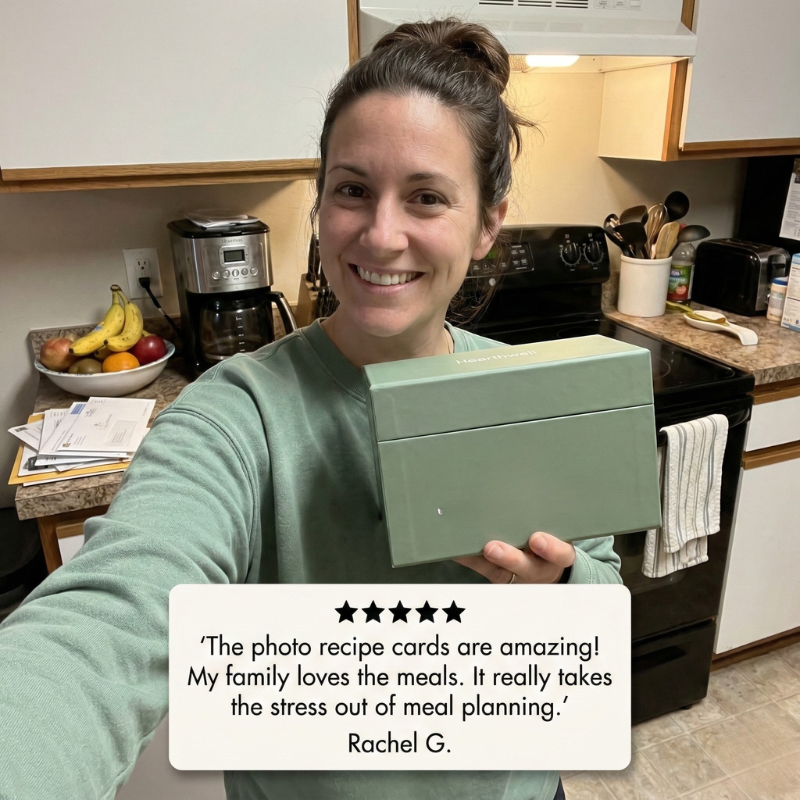 ADD YOUR OWN FAMILY FAVORITES — THE SYSTEM GROWS WITH YOU Hearthwell™ includes 5 blank recipe cards so you can add the meals your family already loves, turning this into a personalized, permanent kitchen system — not a product you use once and put away.