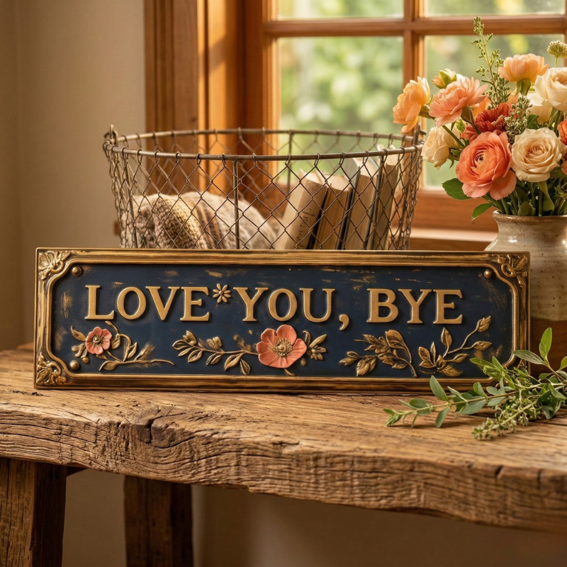 Hearthwick™ – Vintage Floral "Love You, Bye" Metal Wall Sign + 50% OFF