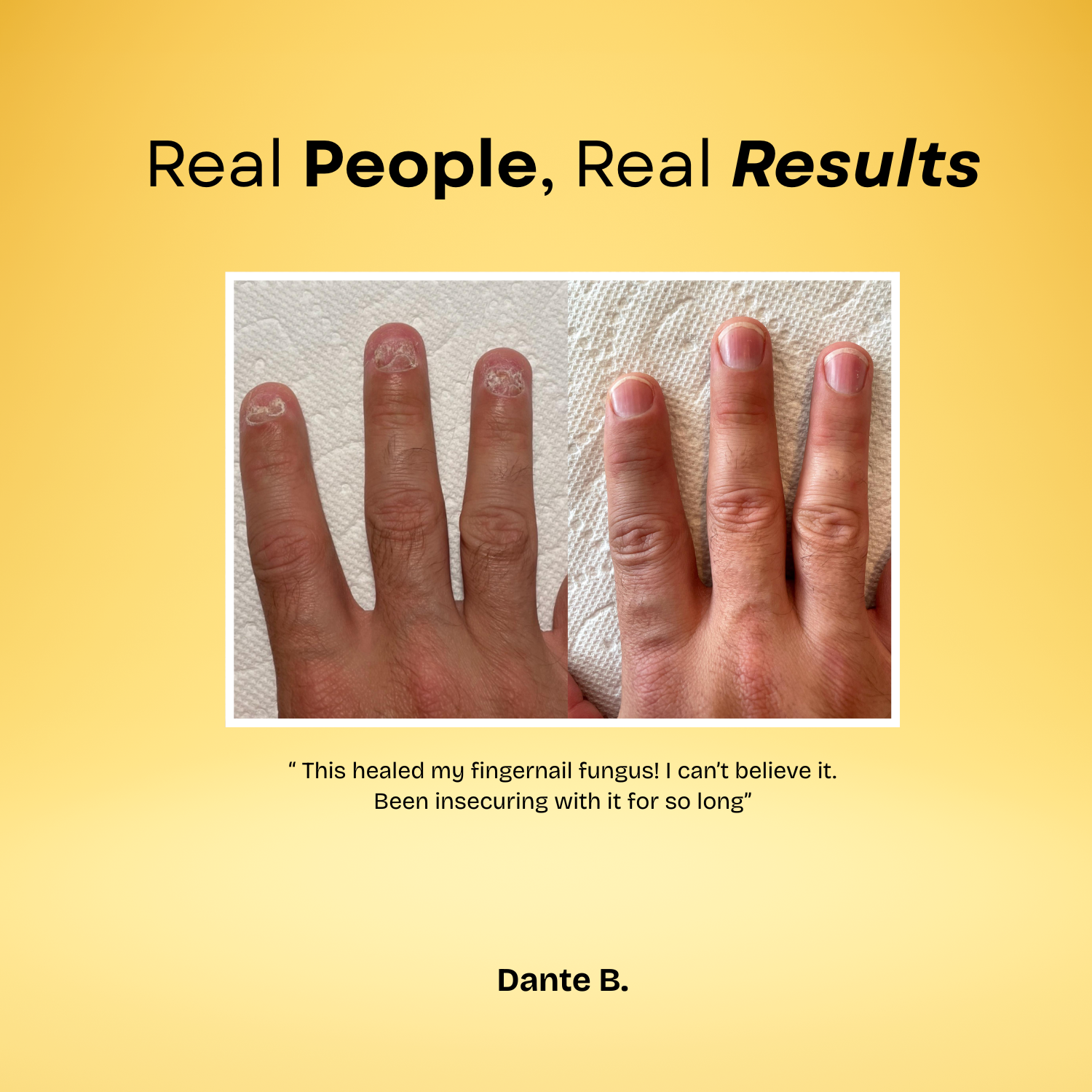 ✔ FORTIFY NEW, HEALTHY NAIL GROWTH As the elixir kills the fungus, it also fortifies the new nail as it grows in. The nourishing ingredients ensure your new nail grows in stronger, clearer, and more resilient to future infections.