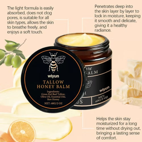 Say goodbye to the discomfort and frustration of dry, rough skin. HydraHoney Balm's unique blend of natural emollients, including tallow and honey, deeply penetrates your skin to deliver long-lasting hydration. Experience the difference as your skin transforms from dry and flaky to supple and soft.