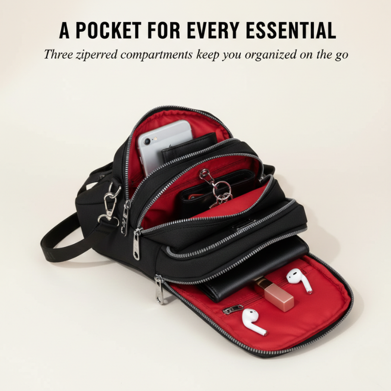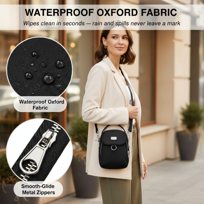 That's why women are switching to compact, multi-pocket crossbody bags built from waterproof Oxford fabric — a smarter way to carry only what matters, organized and protected, without the bulk.