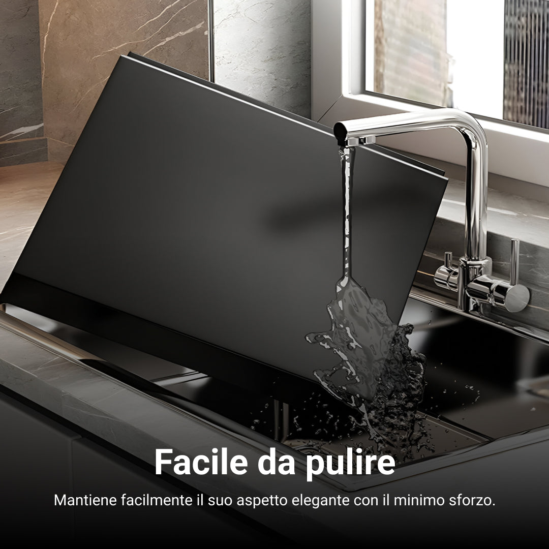 The sleek black design complements any modern kitchen aesthetic—blending function with elegance.