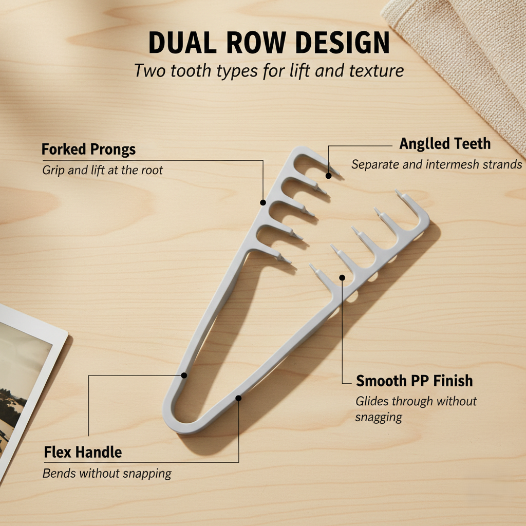 ✔ TIRED OF HAIRSTYLES THAT LOOK "DONE" INSTEAD OF NATURAL — EFFORTLESS TEXTURED FINISH - The forked volumizing prongs on one side and texturizing teeth on the other intermesh your hair strands to create that lived-in, windswept look — no pomade overload, no stiff helmet hair.