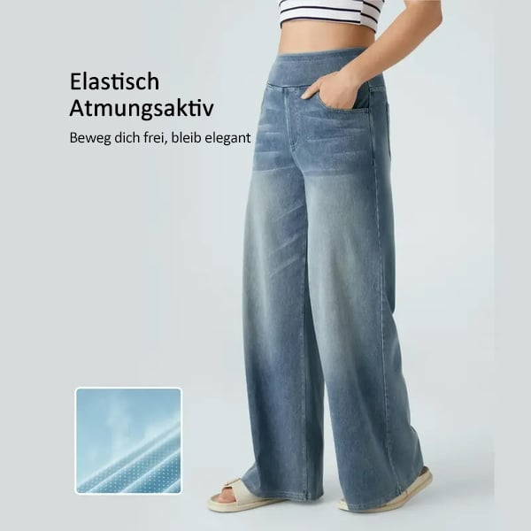A SOFT, 'COULD-SLEEP-IN-IT' FEEL Our 'Denim-Knit' fabric is a custom blend that feels buttery-soft and breathable against your skin. The waistband is designed like a gentle hug, with no digging or stiffness, just pure, lightweight comfort.