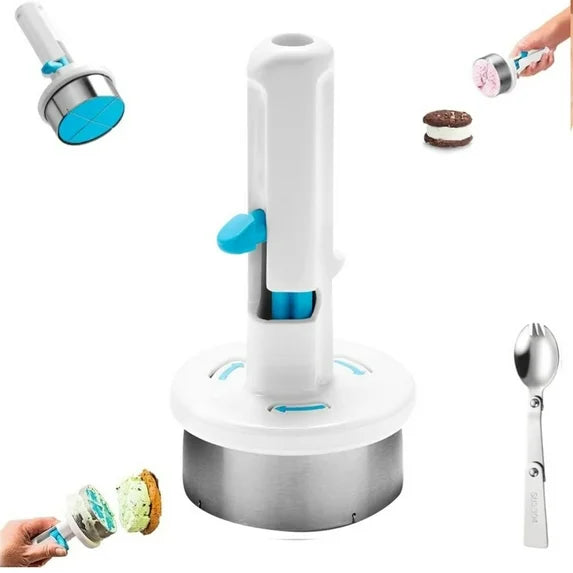 This system allows you to press and twist into the hardest ice cream to cut a perfect disc, then place it on a cookie and use the push-button release to drop it cleanly. It gives you flawless, no-mess ice cream sandwiches that will delight your family.