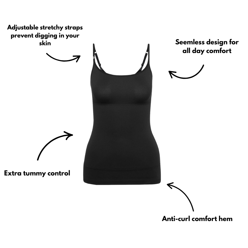 CurveLuxe Top Shaper is the only camisole engineered with these 'Ergo-Compression' zones, designed to flatten your tummy and smooth your back without squeezing your ribs or lungs.