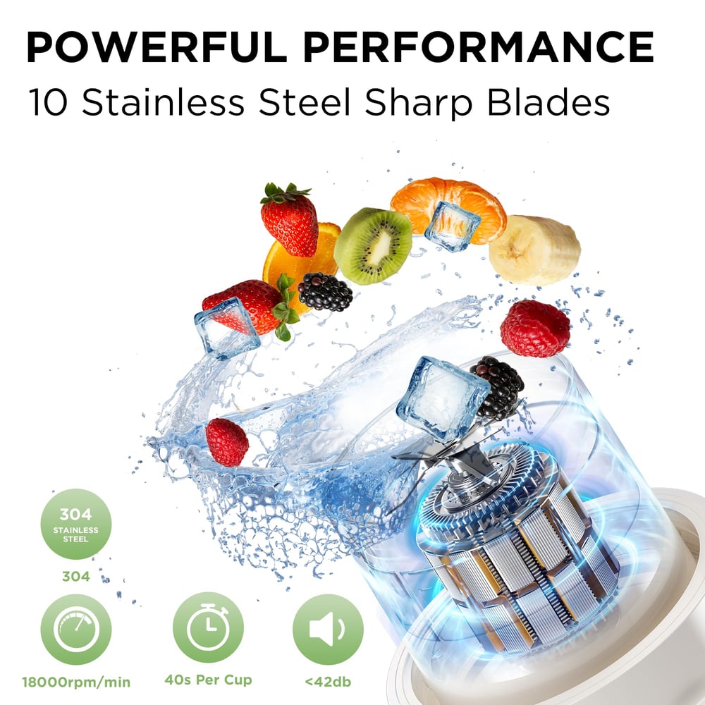 • Can it really blend ice and frozen fruit? Yes. The powerful motor and 10-blade system are specifically designed to be strong enough to easily crush ice and blend frozen fruits for thick, cold smoothies.