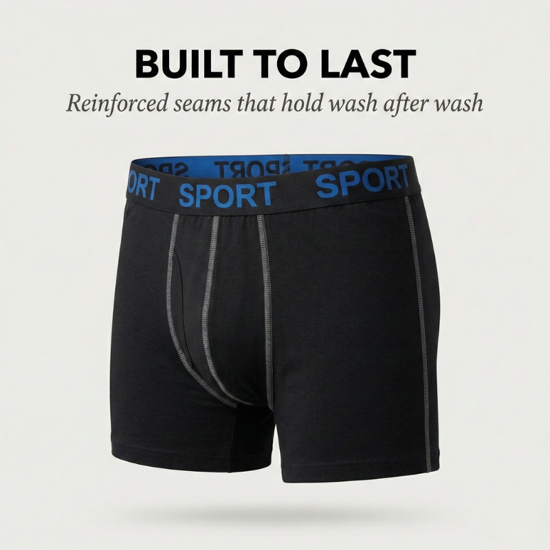 5 PAIRS THAT HOLD UP — WASH AFTER WASH, MONTH AFTER MONTH Trunkwell™ uses color-locked fabric that resists fading through repeated machine washing, and reinforced stitching at every stress point so the waistband, seams, and leg openings hold their shape — not just the first week, but the first year. Five pairs, fully refreshed, for the cost of one premium single.