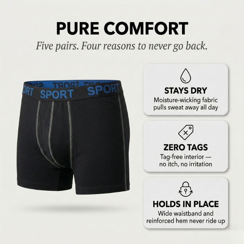 Trunkwell™ – 5-Pack Moisture-Wicking Tag-Free Boxer Briefs for Men + 50% OFF