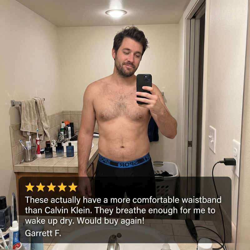 But there's a reason 10,000+ men have switched to Trunkwell™: a tag-free interior that eliminates the #1 source of all-day irritation, paired with a wide sport waistband engineered to lock in place — from the morning commute to the 6 PM gym session — without rolling, digging, or shifting.