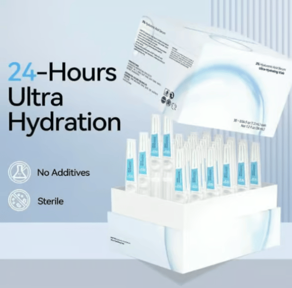 • How is this better than a regular bottle of hyaluronic acid serum? A regular serum in a bottle is exposed to air and potential contaminants every time you open it, which can degrade the formula's potency over time. Our single-use, sterile vials guarantee that every single application is as fresh, pure, and powerful as the first.