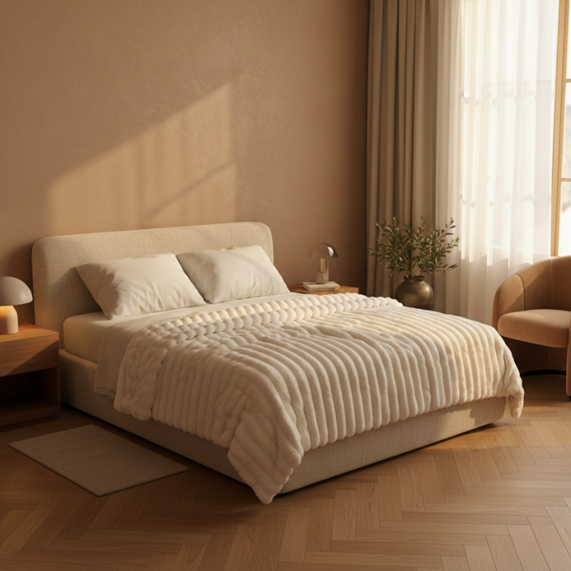 Each raised plush rib traps warm air close to your body while the ultra-dense faux fur fibers stay impossibly soft wash after wash — so your cozy sanctuary doesn't just last one season, it becomes your favorite part of coming home.