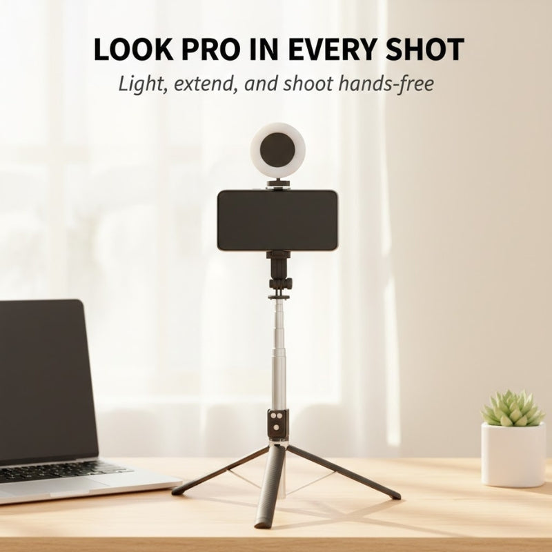 Its built-in LED fill light softens your skin and eliminates shadows, while the 65-inch extendable tripod and Bluetooth remote let you step back, pose naturally, and capture the shot hands-free so every photo finally looks the way you actually look in real life.