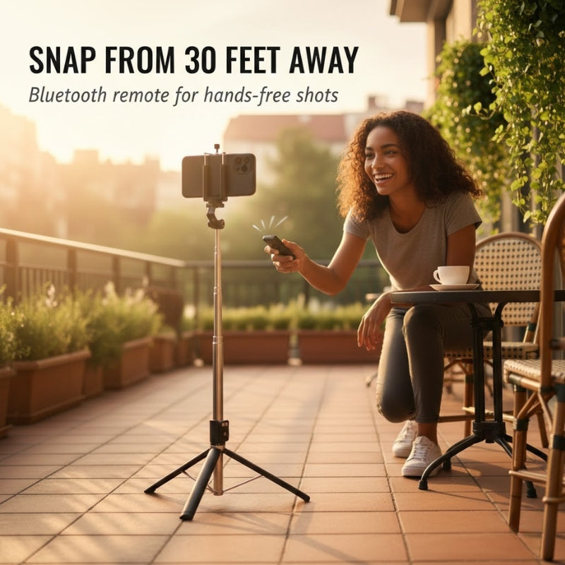 ✔ NEVER ASK A STRANGER TO TAKE YOUR PHOTO AGAIN - The detachable Bluetooth remote connects instantly to your phone from up to 30 feet away, letting you frame your shot, walk into position, and snap completely hands-free, every single time.