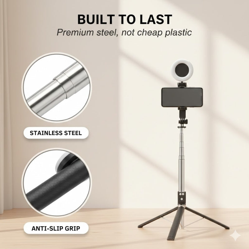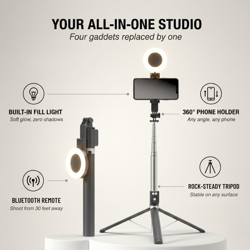 Framecast™ All-in-One Selfie Stick Tripod with Fill Light & Bluetooth – Ausbury